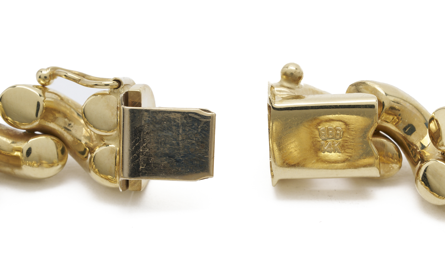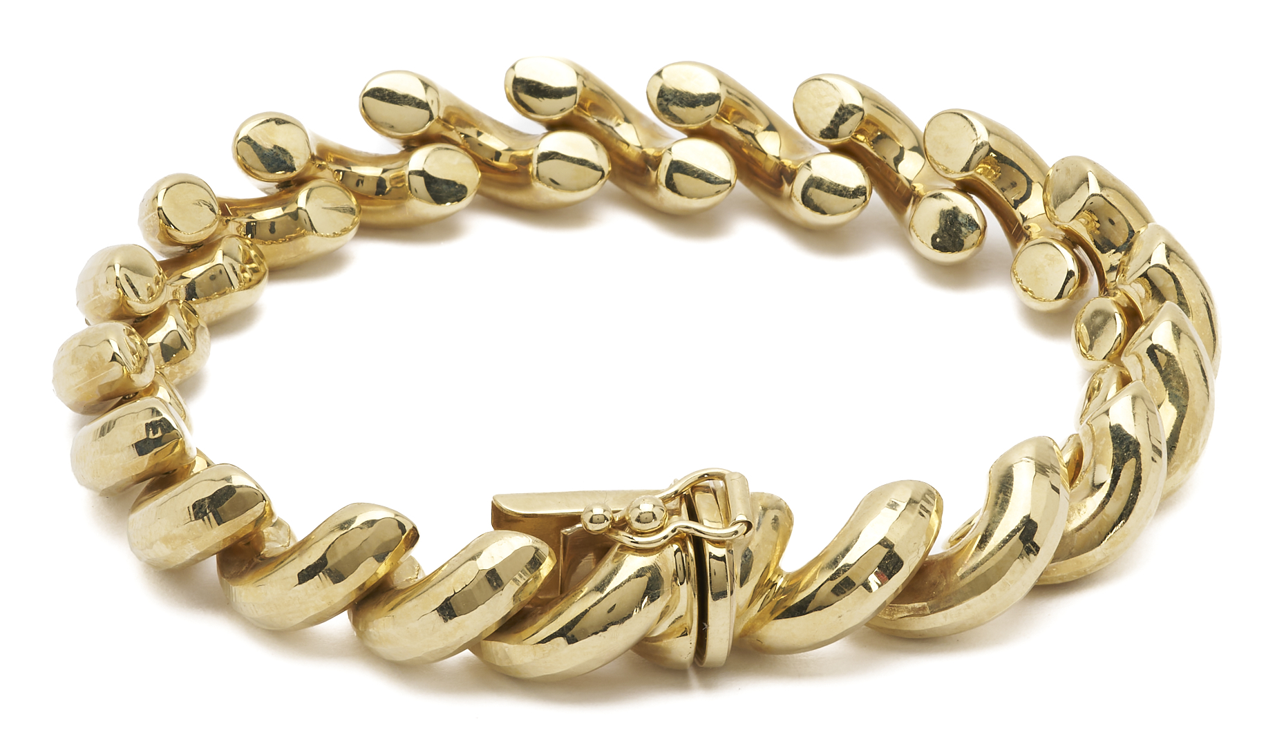 Ladies’ 14K yellow gold San Marco style bracelet. The bracelet is marked “14K BBB” and XRF tests 14K gold. The bracelet is 7 in. L. and has a weight of 17.63 grams.