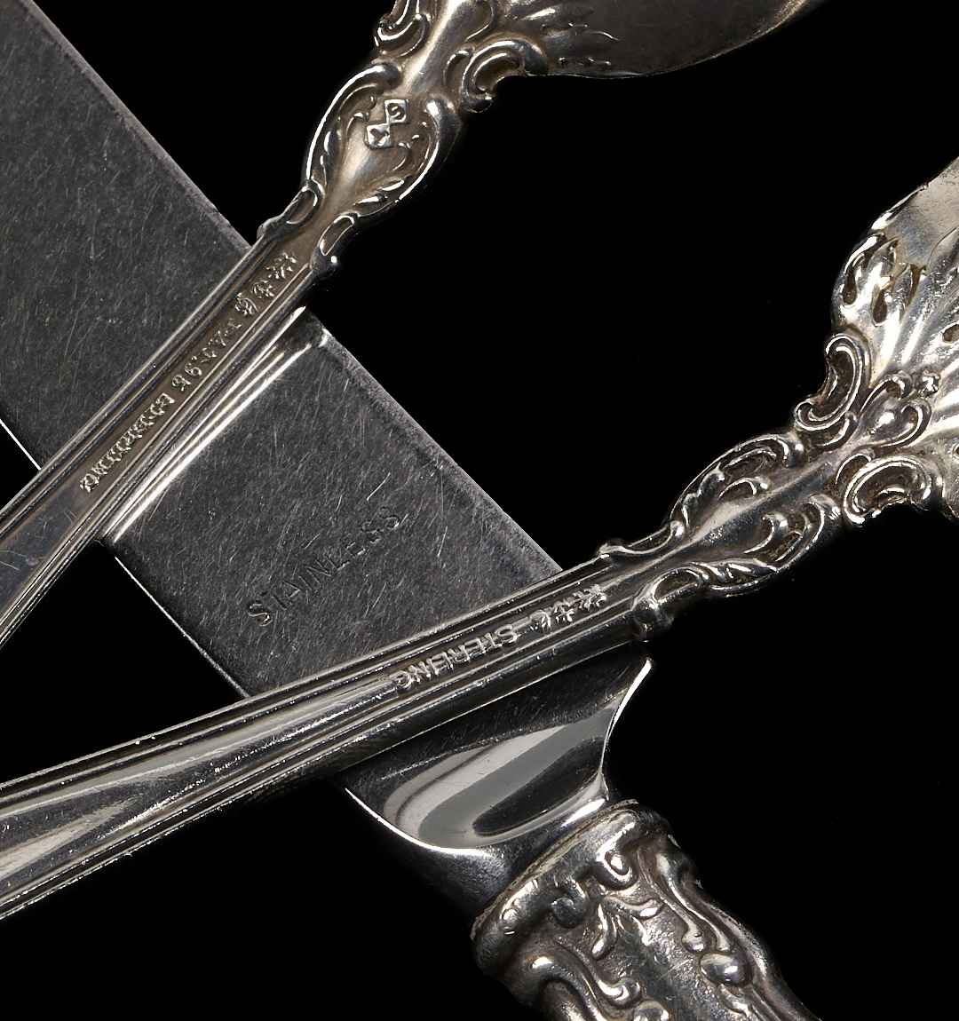 CONDITION: Flatware is in overall good condition. Baby rattle and cups with scattered denting.