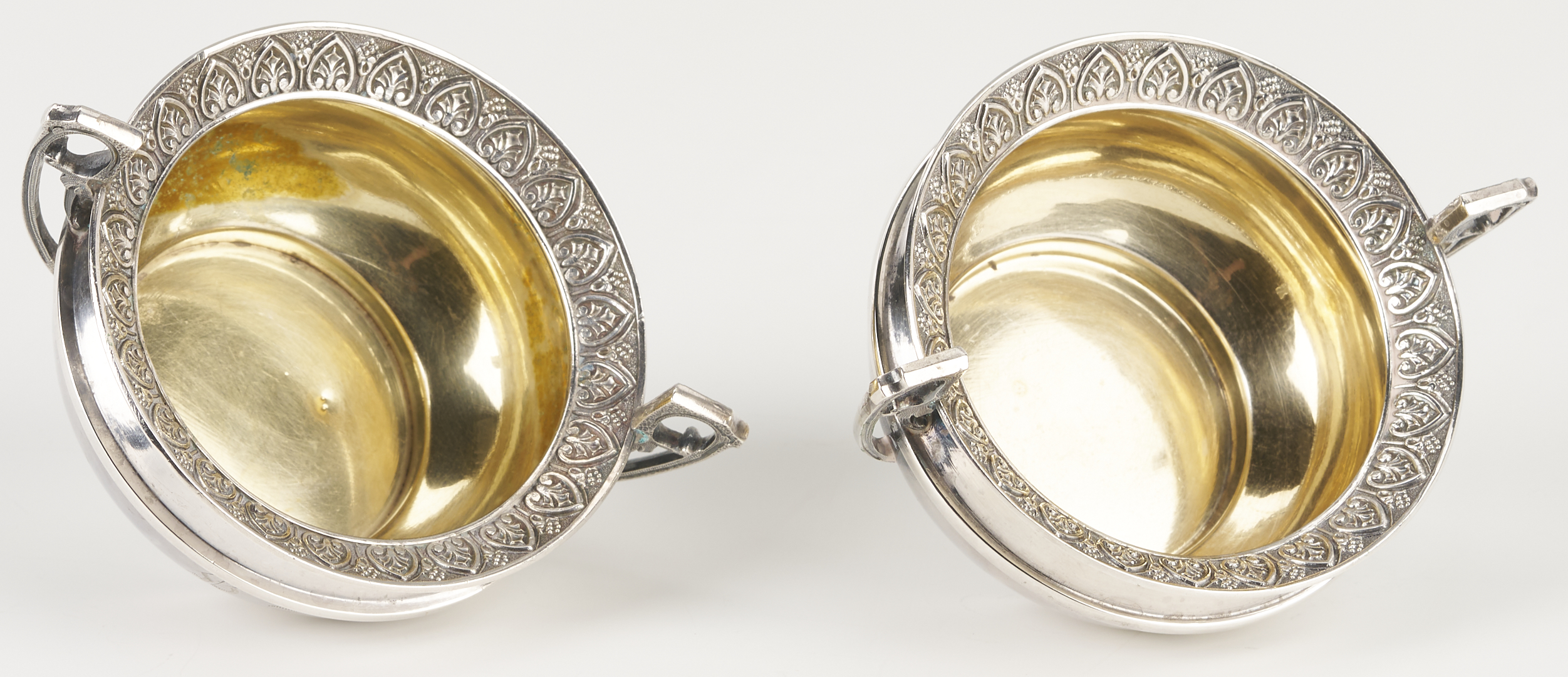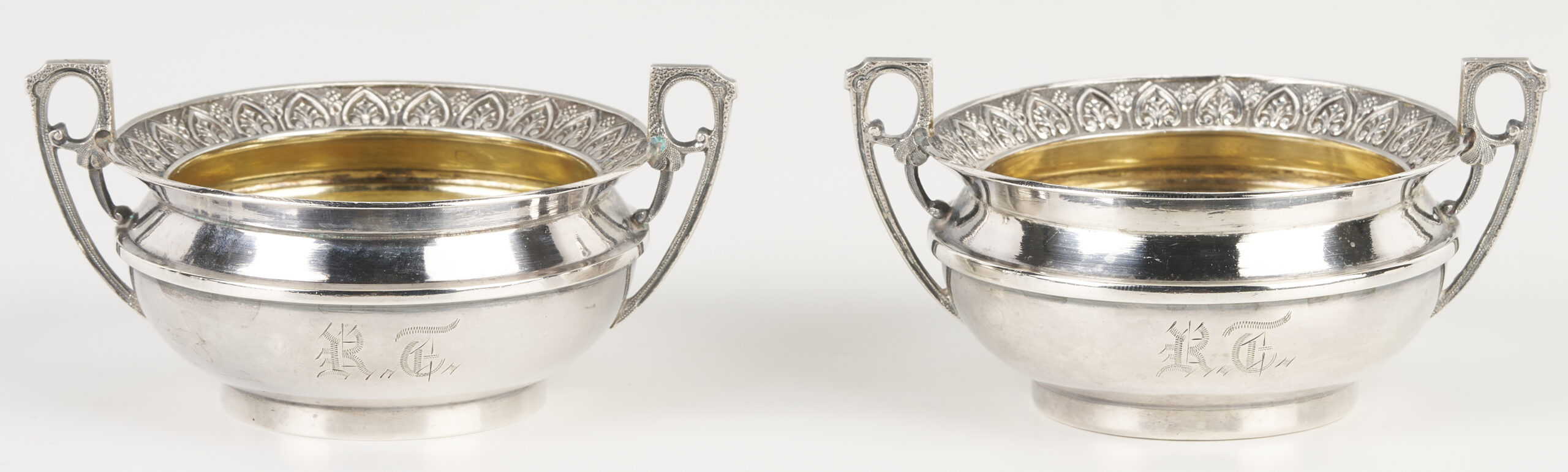 CONDITION: All items overall good condition; some corrosion to interior of salts. Note monograms.