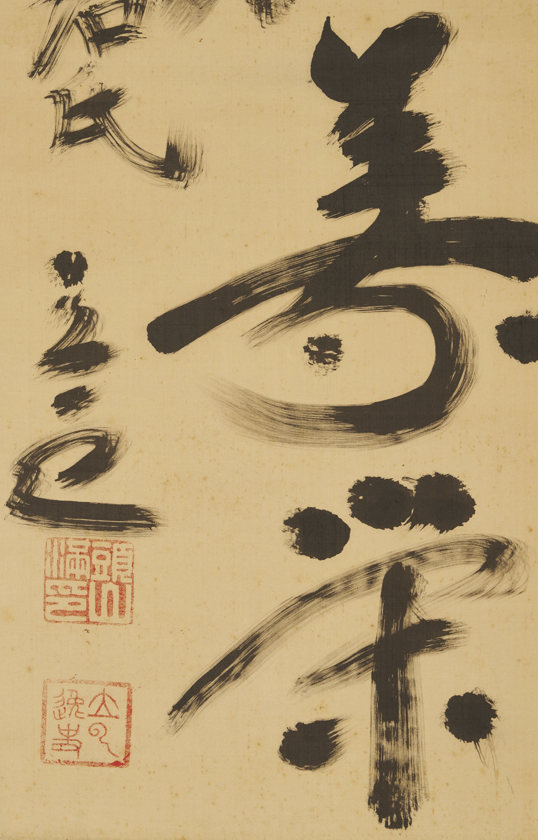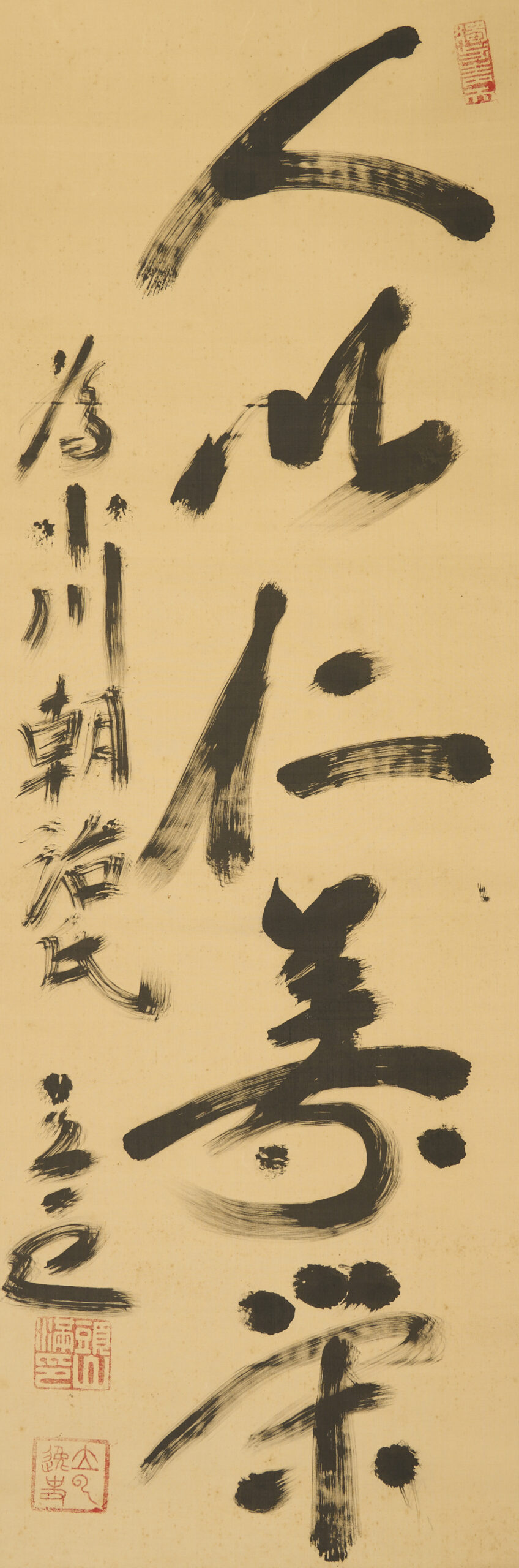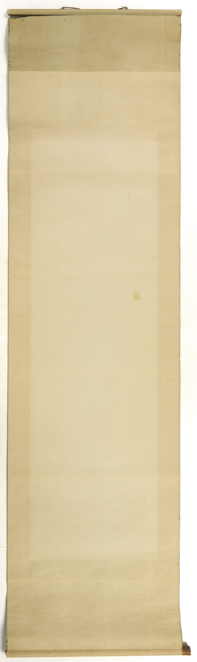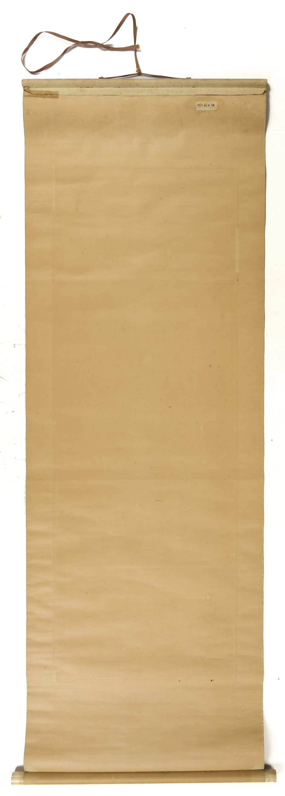 CONDITION: All items in overall very good condition. Item 1 with minor wear to verso and 2 inch tear to top of mount. Scrollbar is missing one knob. Box with minor abrasions and losses. Item 2-3 with even toning, some areas of spotting, fading to decorative brocade border and backing.