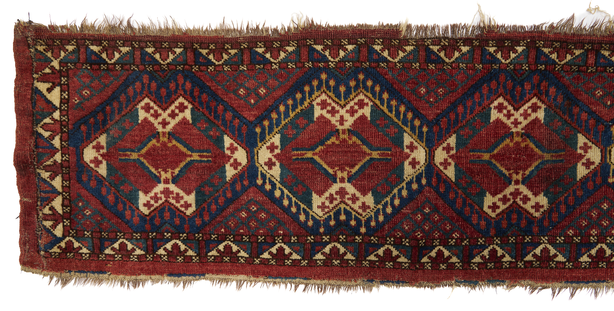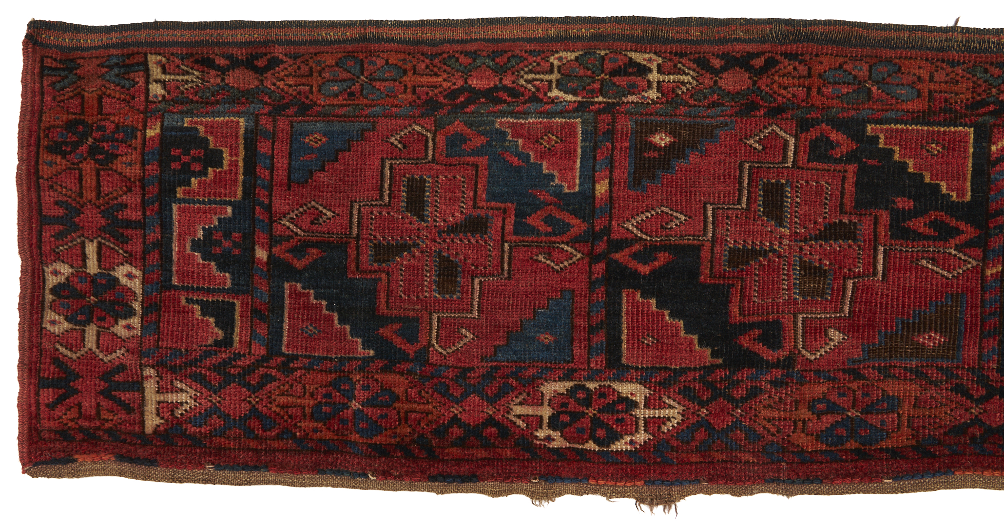 CONDITION: Uzbek chuval with areas of moderate pile wear on both sides. Both Ersari torbas overall good condition with light wear and losses to fringed ends.