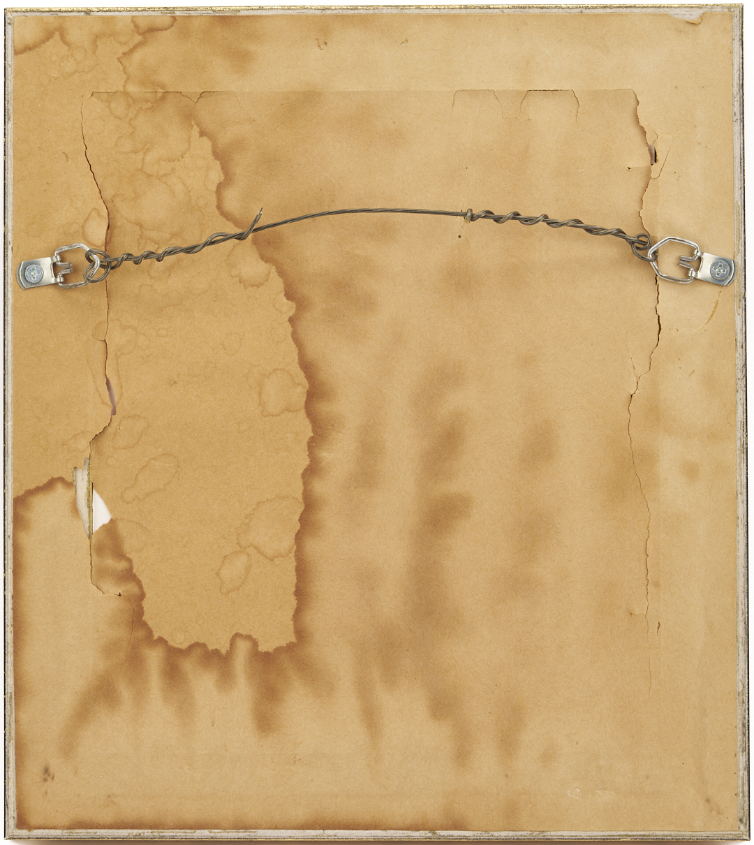CONDITION: 1st item: Painting in excellent condition, light rippling. Lighted stand functional at time of inspection, rewiring recommended. 2nd item: Some wear to paint at lower right corner, otherwise very good condition. Fabric residue to frame from previous external matting and framing. Lacks backing.