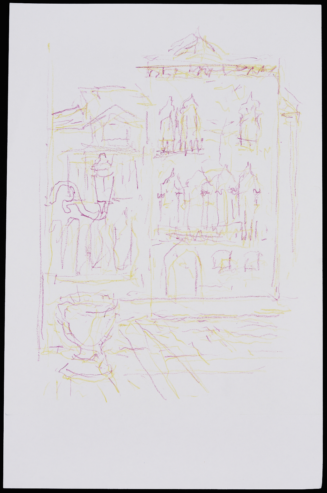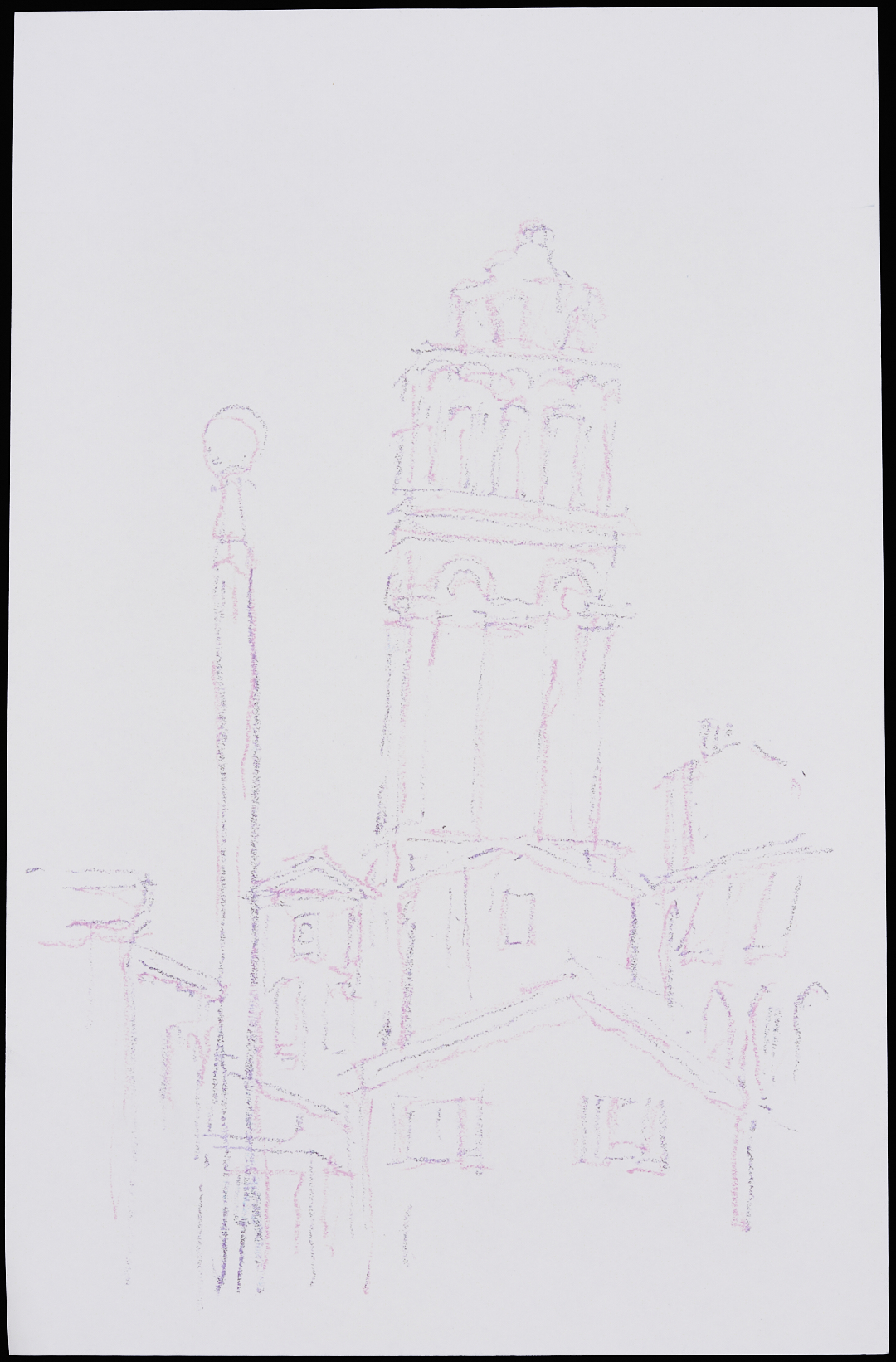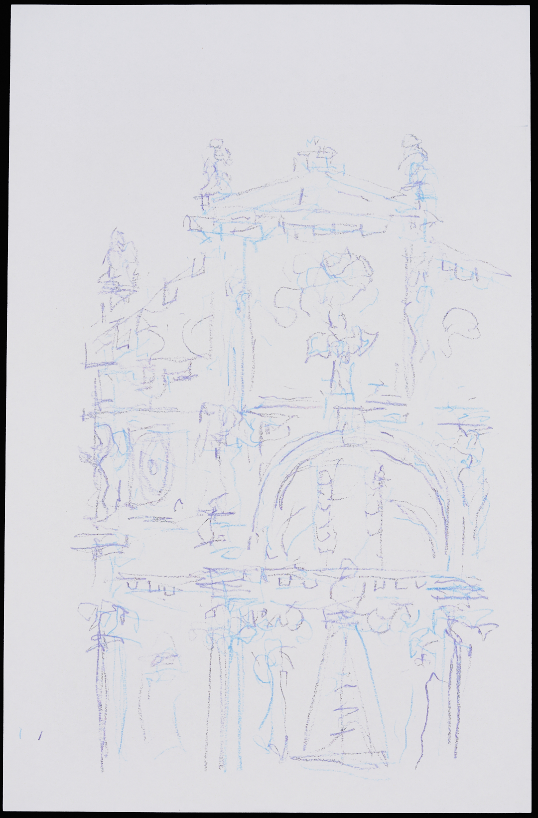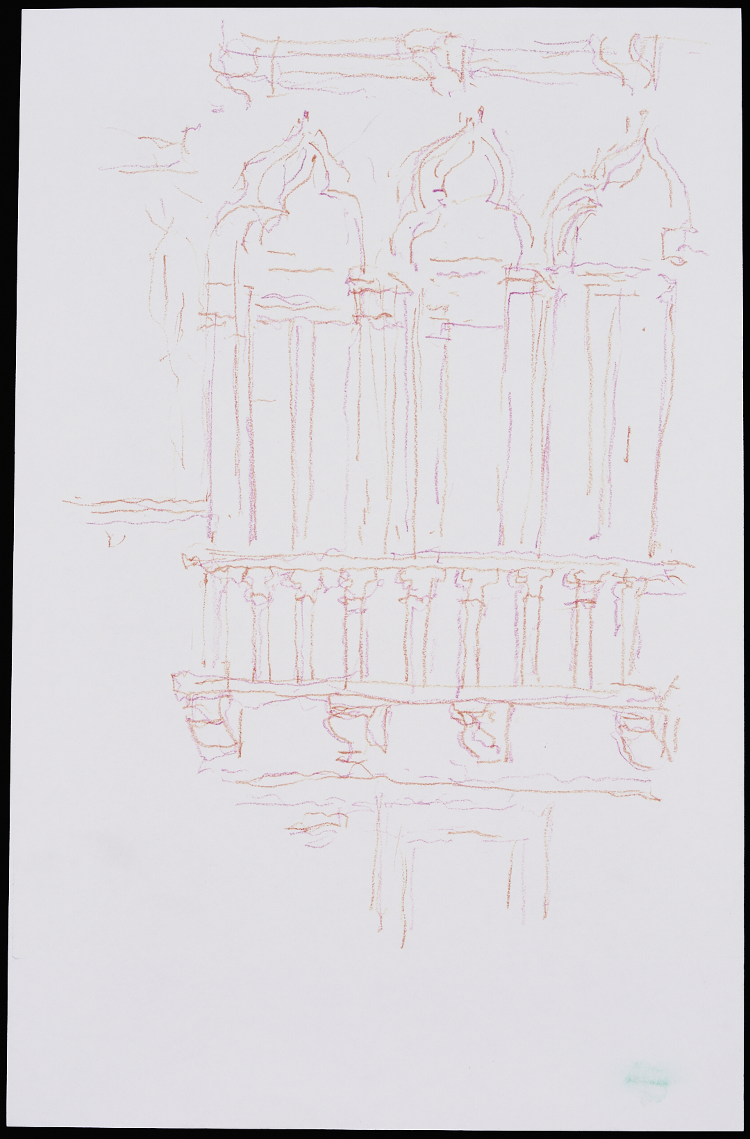 A collection of thirty-two (32) George Cress (American/Tennessee, 1921-2008) primarily architectural or related works on paper in graphite, charcoal, and colored pencil, including one graphite drawing on canvasboard and one colored pencil drawing on tracing paper, c.1943 – c. 2000s. Subjects include: Ringling Circus; Ocracoke, North Carolina; Teloga, Georgia; Bampton, Oxfordshire, England; Munich, Germany; Ogunquit and Rockport, Maine; and Harrisburg, Pennsylvania, among others. Some titled and inscribed, all with museum accession numbers en verso. Housed in a paper sleeve. Sheet dimensions range from 5 13/16 in. x 4 5/8 in. to 18 3/4 in. x 14 3/4 in. Sleeve: 22 in. x 17 in. Lot also includes six photocopies after George Cress architectural drawings, one with pencil augmentation.