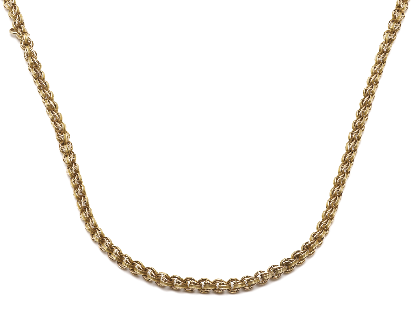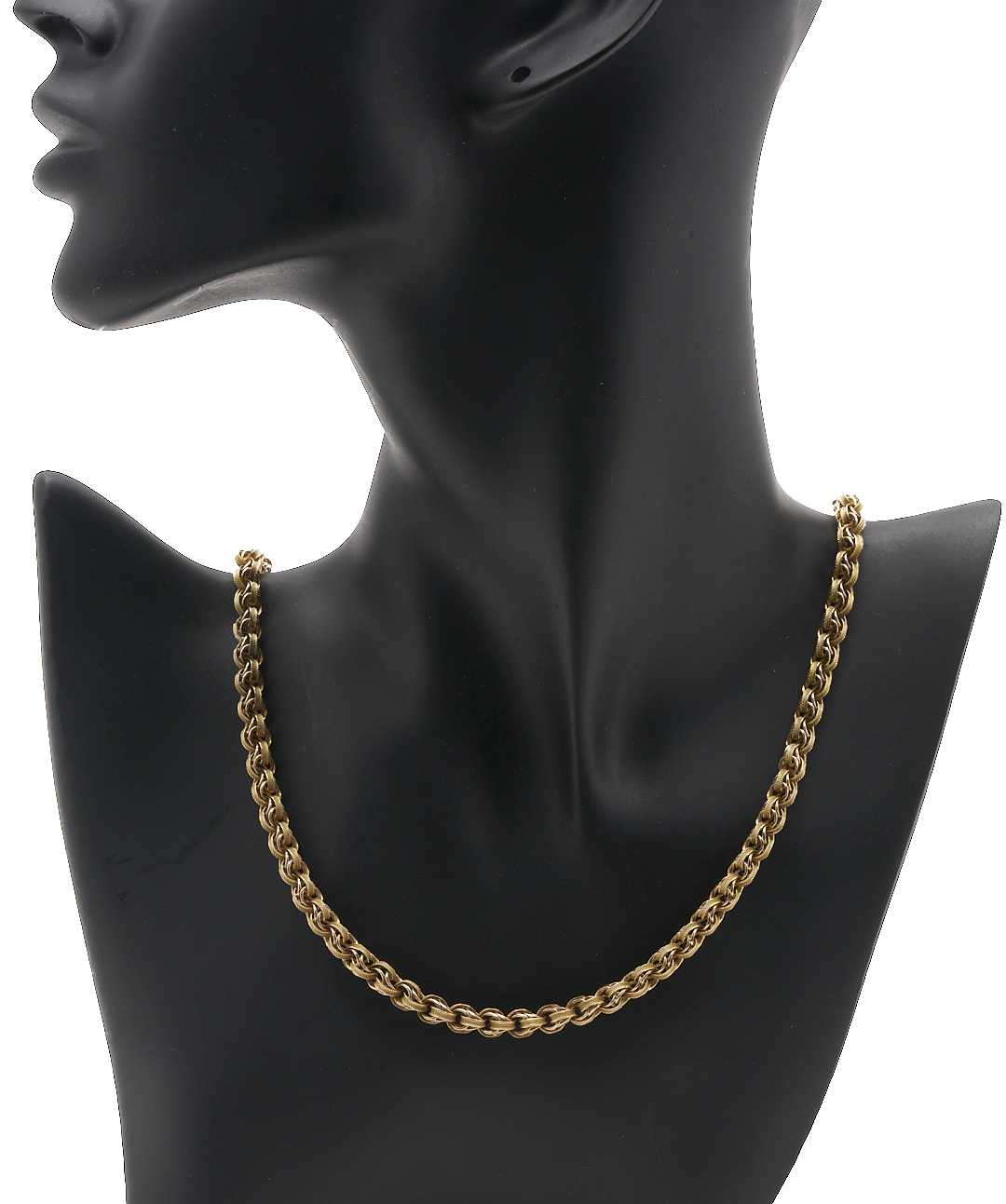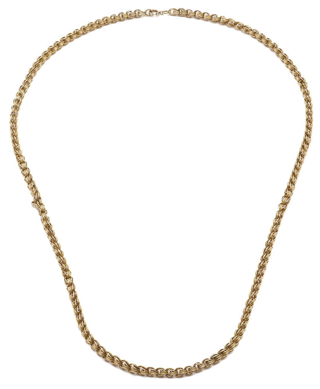 10K yellow gold triple link necklace. The necklace XRF tests 10K gold. The necklace is 30 in. L. and has a weight of 35.17 grams.
