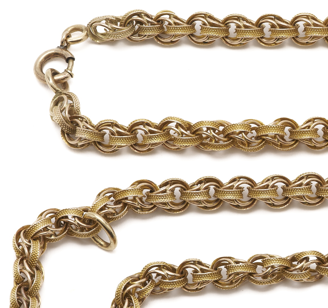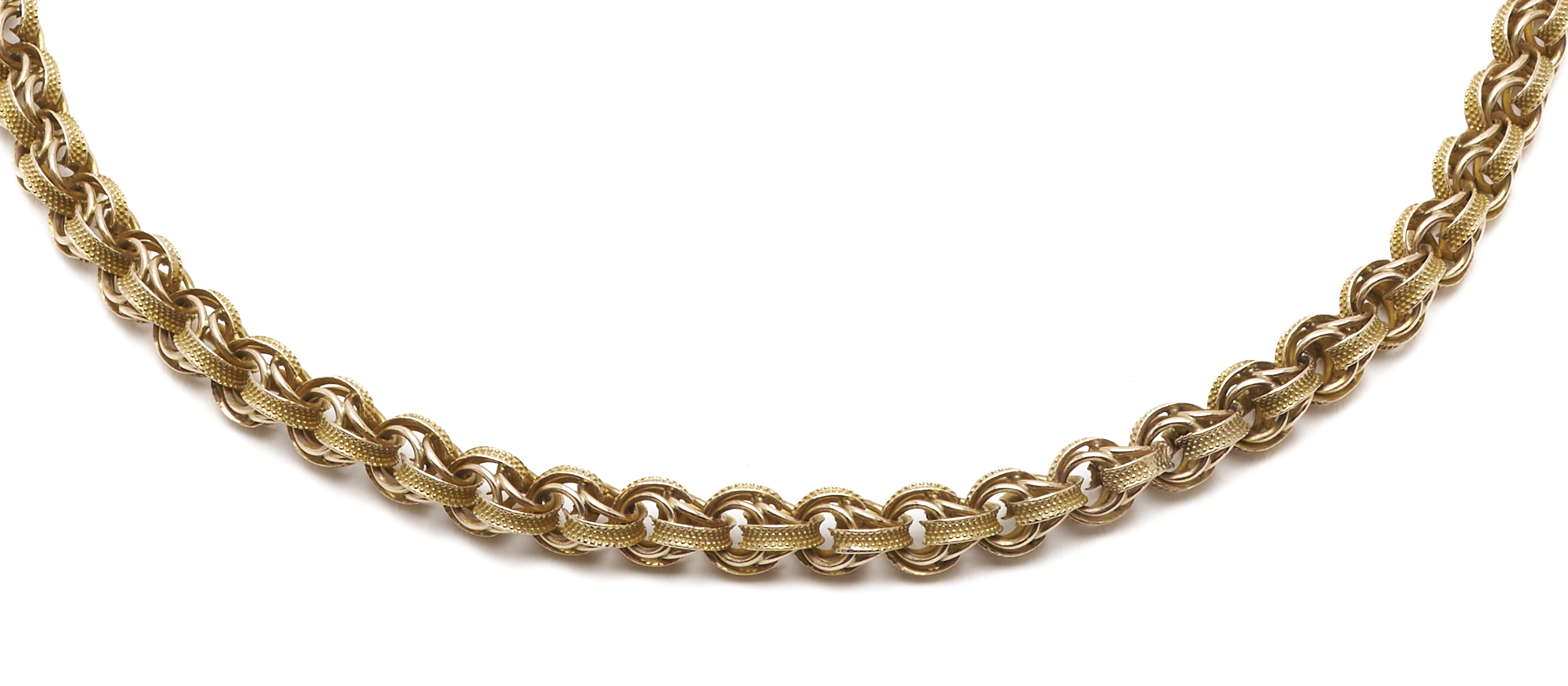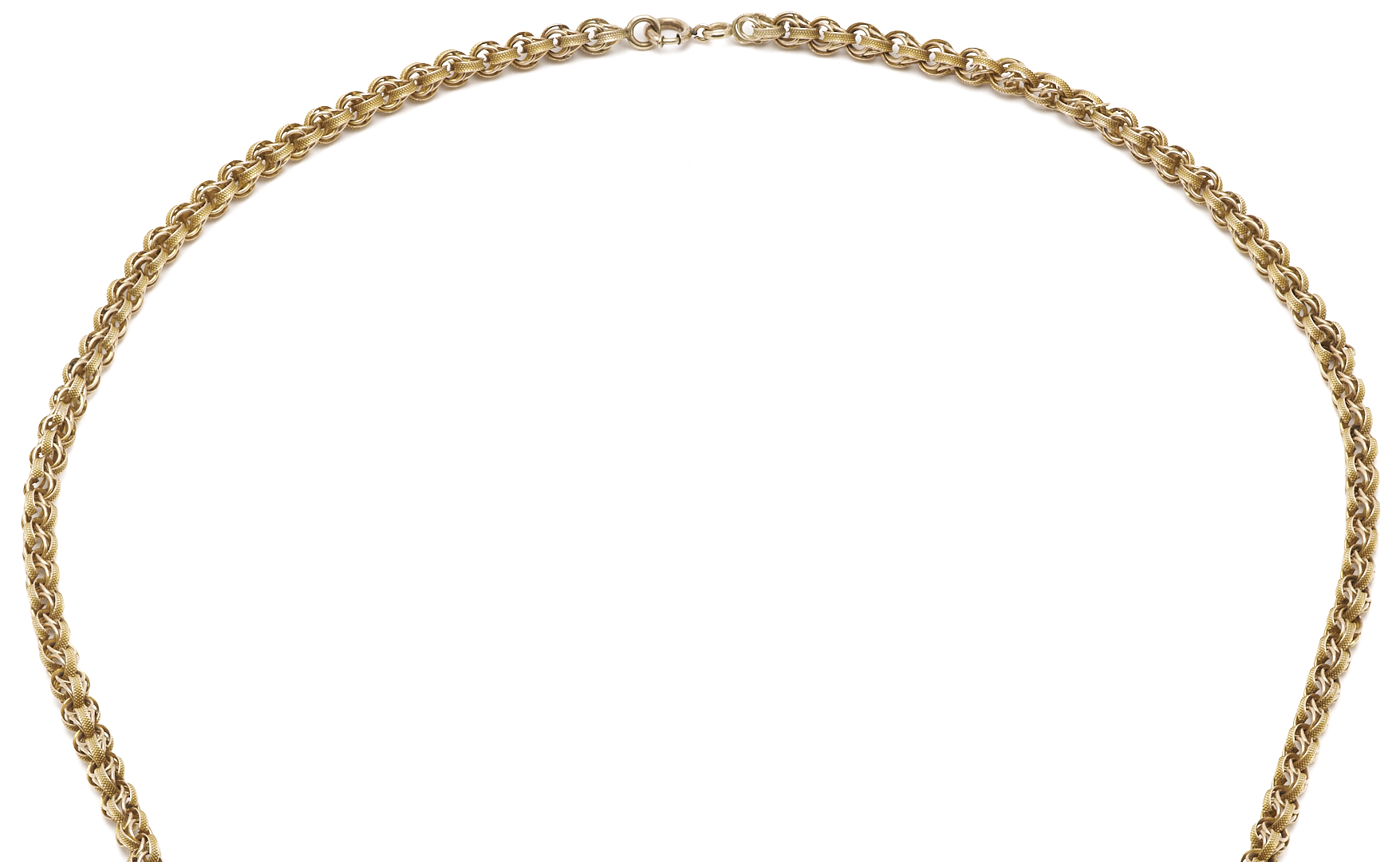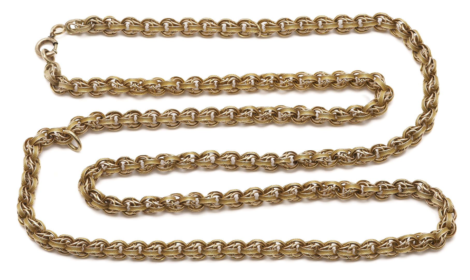 10K yellow gold triple link necklace. The necklace XRF tests 10K gold. The necklace is 30 in. L. and has a weight of 35.17 grams.
