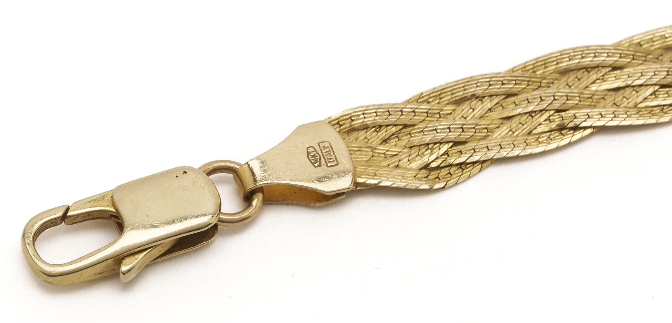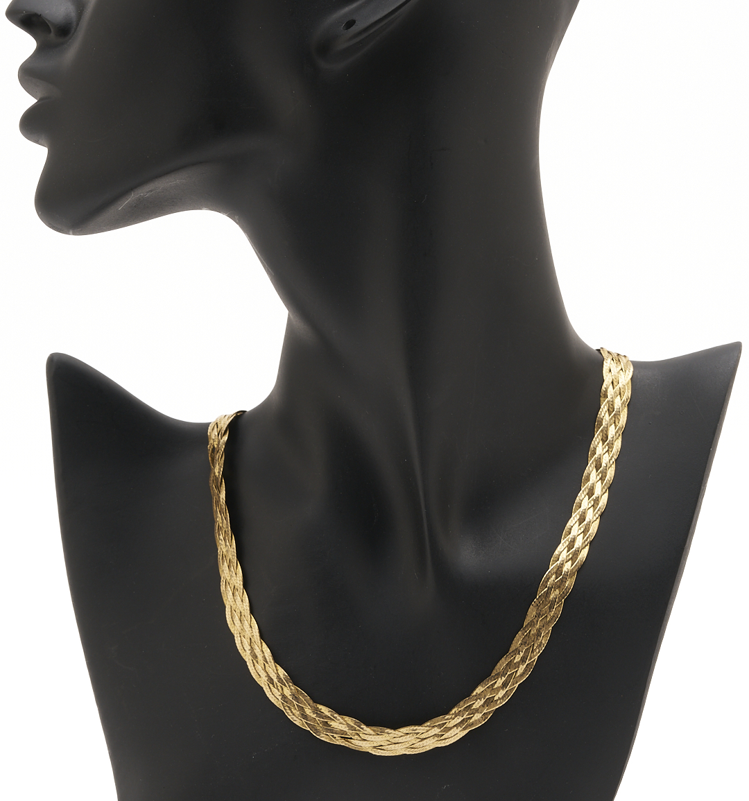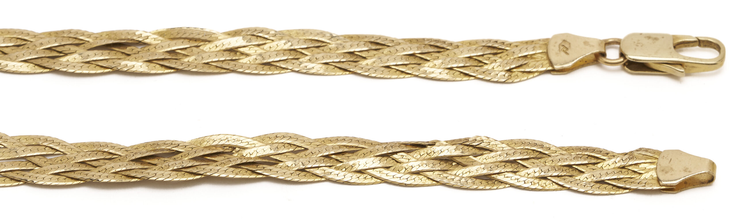 Ladies’ 14K yellow gold flat braid chain necklace. The necklace is marked “14K Italy” and XRF tests 14K gold. The necklace is 16 in. L. and has a weight of 14.09 grams.