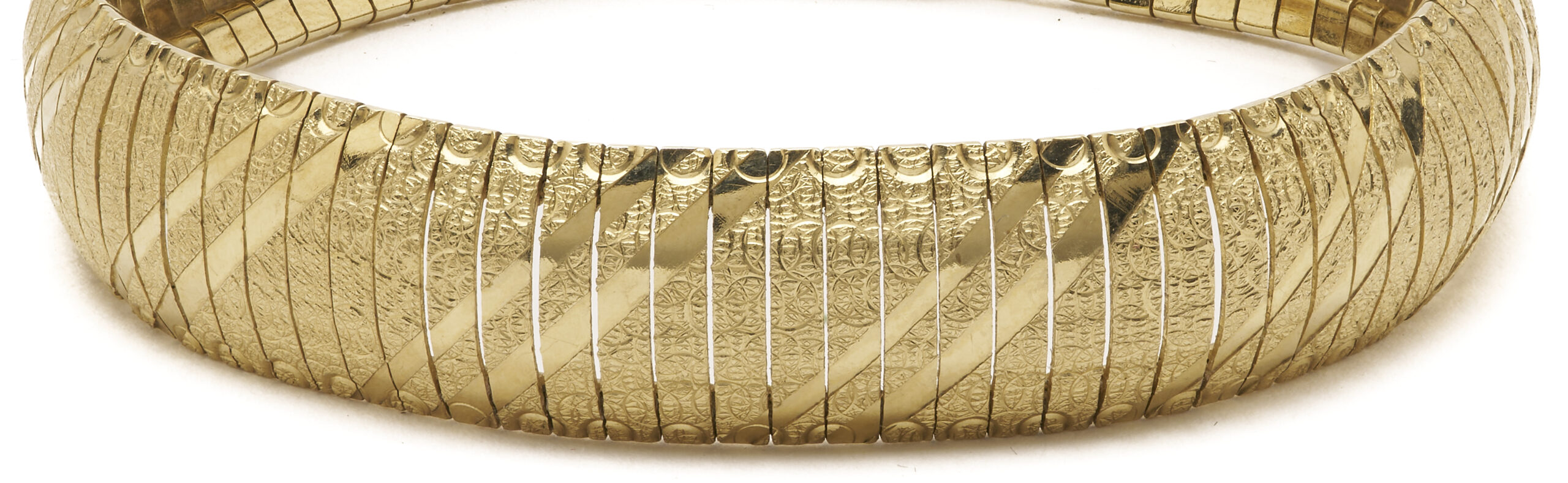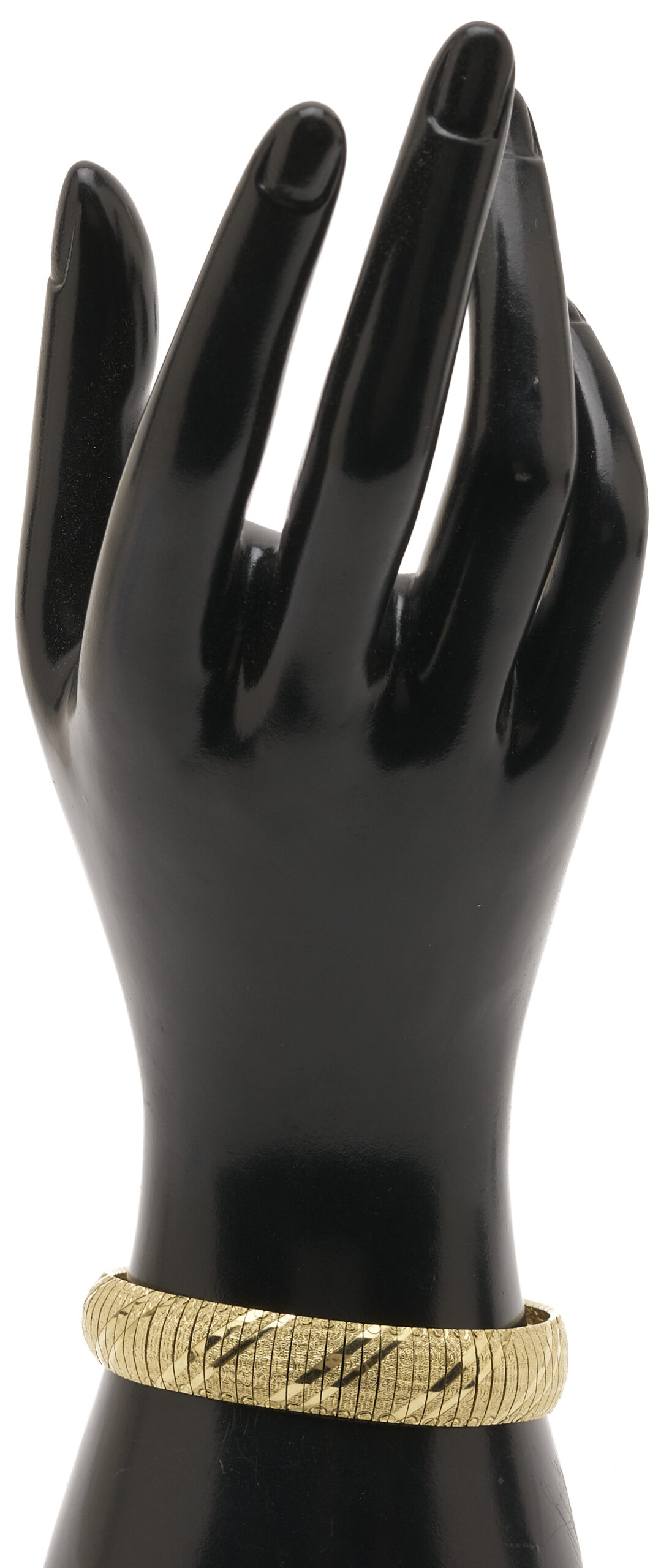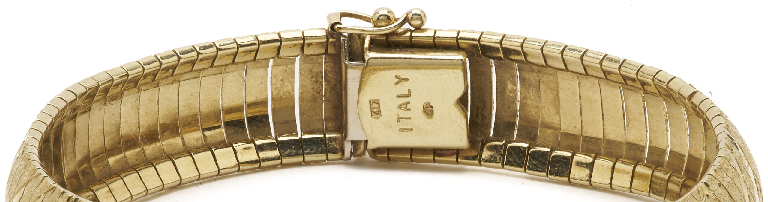 Ladies’ 10K yellow gold Italian bracelet. The bracelet is marked “417 Italy GP” and XRF tests 10K gold. The bracelet is 7 in. L. and has a weight of 19.69 grams.