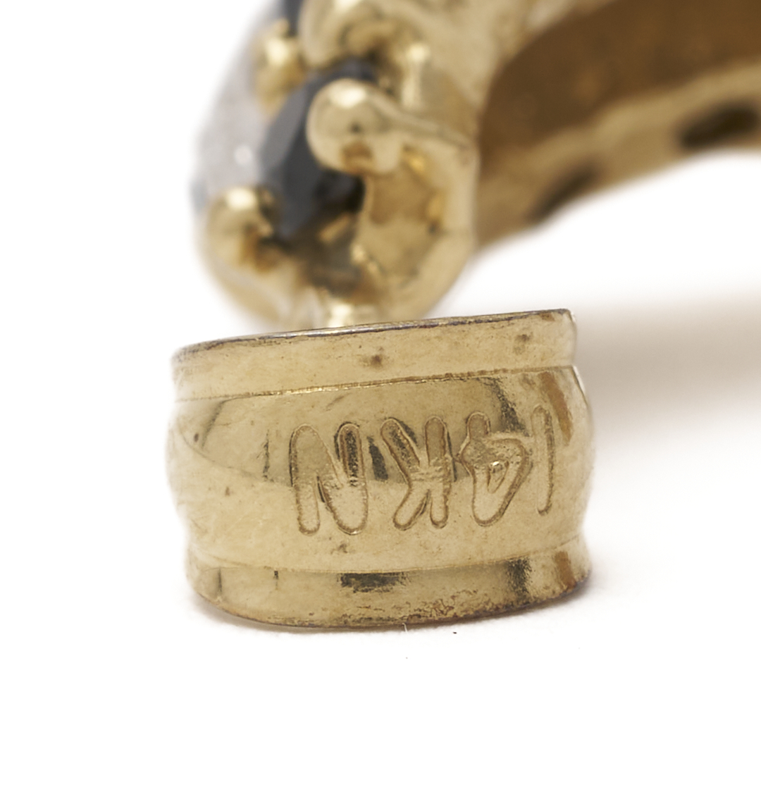 1st item: Ladies’ 10K white gold necklace featuring eight (8) natural sapphires accented by sixteen (16) single cut melee diamonds. The necklace is marked “10K RJW” and XRF tests 10K gold. The necklace is 18 in. L. and has a gross weight of 5.40 grams. 2nd item: Ladies’ 10K yellow gold omega necklace. The necklace is marked “10K” and XRF tests 10K gold. The necklace is 17 in. L. and has a weight of 4.41 grams. 3rd item: Ladies’ sterling silver box chain necklace. The necklace is marked “925” and XRF tests sterling silver. The necklace is 20 in. L. and has a weight of 2.37 grams. 4th item: Ladies’ 10K yellow gold pendant featuring thirty six (36) synthetic spinel in a rainbow. The pendant is marked “10K” and XRF tests 10K gold. The pendant is 7/8 x 1/2 in. and has a gross weight of 3.56 grams. 5th item: 14K yellow gold pendant featuring ten (10) natural sapphires accented by one (1) single cut melee diamond. The pendant is marked “14K” and XRF tests 14K gold. The pendant is 1 x 1/4 in. and has a gross weight of 2.59 grams. Gross gold weight of the lot is 15.96 grams.