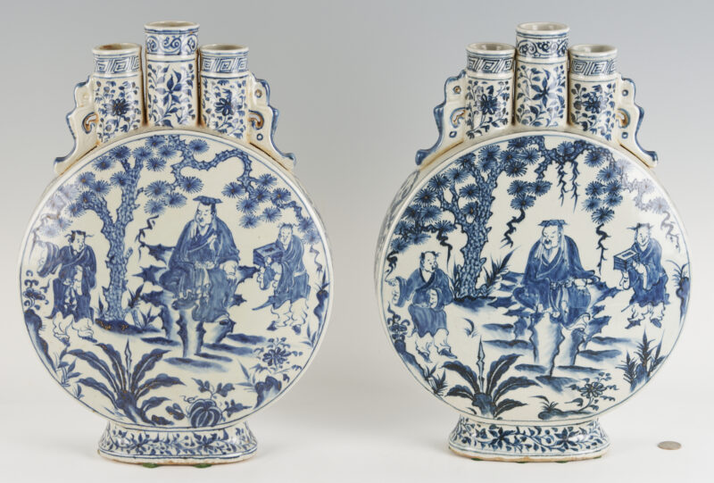 Lot 890: Pair Chinese Blue and White Porcelain Moon Flasks