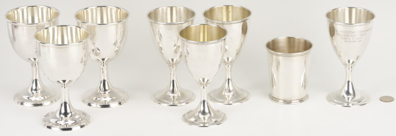 Lot 615: 7 Sterling Silver Goblets Incl. Bellemeade Golf Trophy Plus Julep Cup