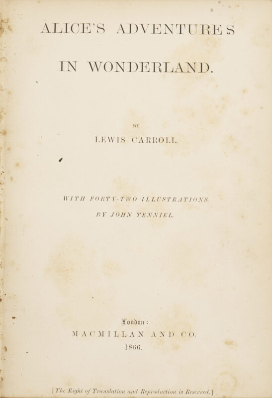Lot 547: Lewis Carroll: Alice’s Adventures in Wonderland, 1866 London MacMillan