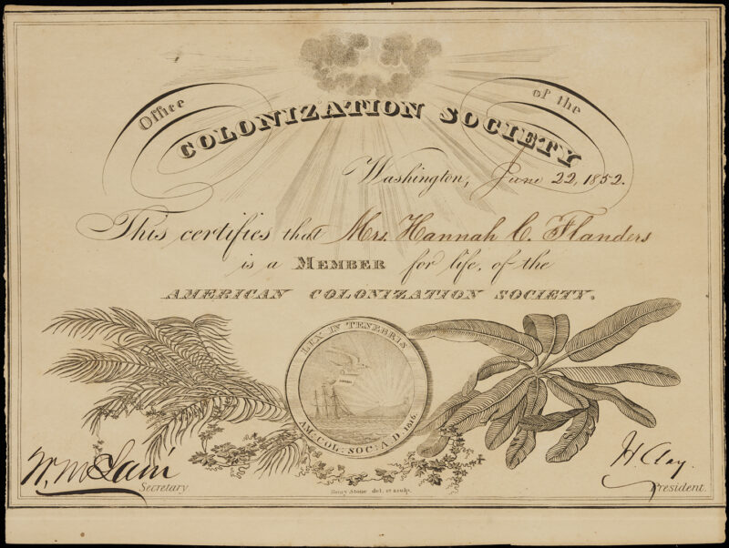 Lot 486: Henry Clay signed 1852 American Colonization Society Certificate – Liberia