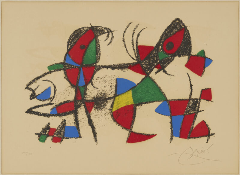 Lot 403: Joan Miro Signed Lithograph, Lithograph X AKA Dolphin & Parrot