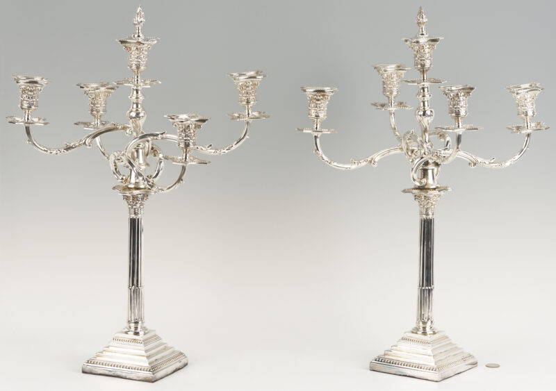 Lot 65: Pair of English Sterling 5-Light Candelabra