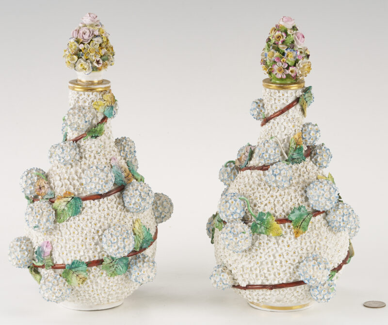 Lot 355: Pr. Meissen or Meissen Style Schneeballen Bottle Vases